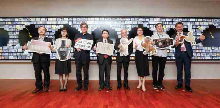 NG大舞台携手创利空间为故宫建置的智慧文物互动导览墙及轮播墙,,今日正式启用。。。(左四:NG大舞台新事业暨投资管理总部副总经理杨本豫、、、、右四:故宫博物院院长吴密察、、右三:太极影音董事长黄宝云)